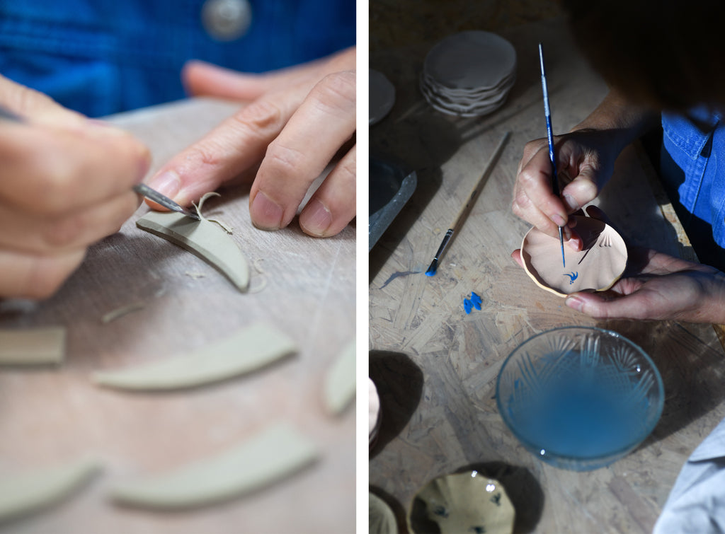 • Revalorisation des matières : toutes les chutes d’argile sont recyclées, les émaux réutilisés. Les pièces ne correspondants pas à notre exigence esthétique sont offertes, revendues à prix doux ou intégrées à des projets artistiques.