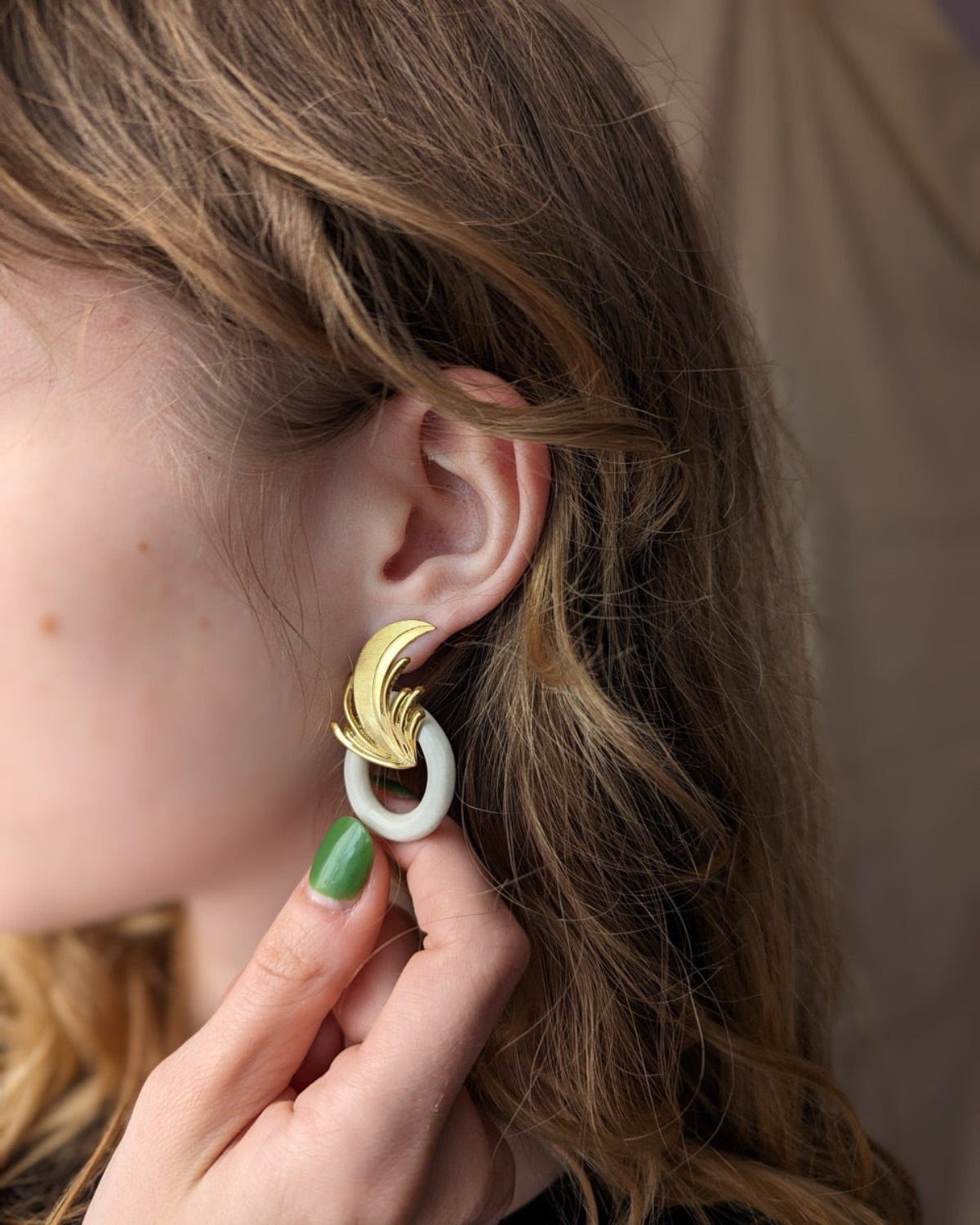 Une courbe sculpturale, une présence douce qui accompagne le visage. Nos boucles d'oreilles EDEN réinterprètent l’esprit vintage dans une allure contemporaine : une pièce qui affirme, sans jamais alourdir.